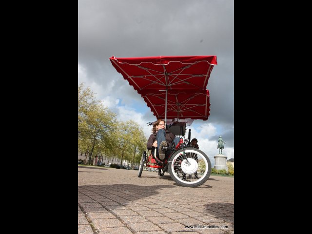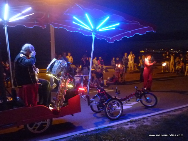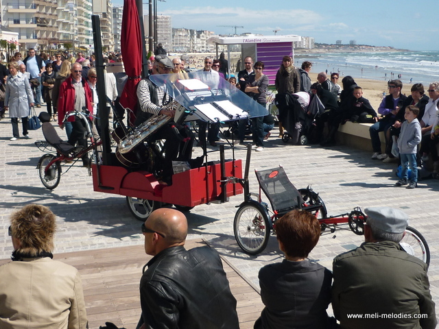 Moins large (80cm) et plus rapide (si besoin) que la Rosalie, le vélo-orchestre est aussi à l’aise en salle que dans la rue :