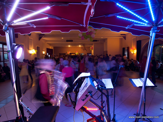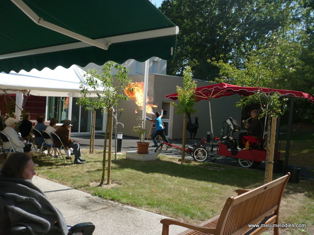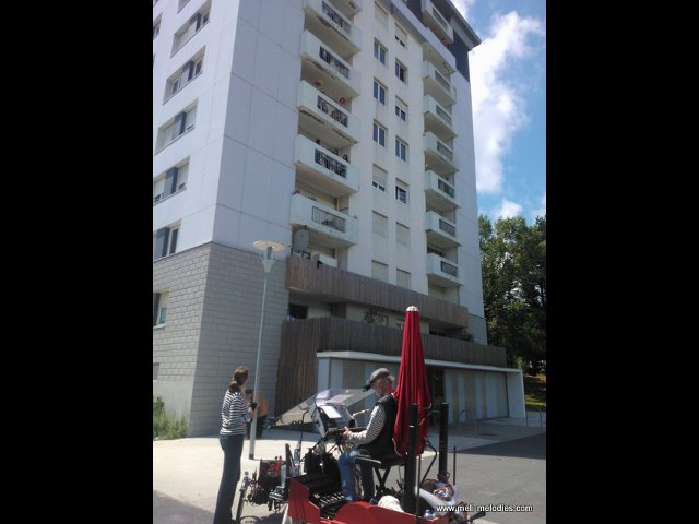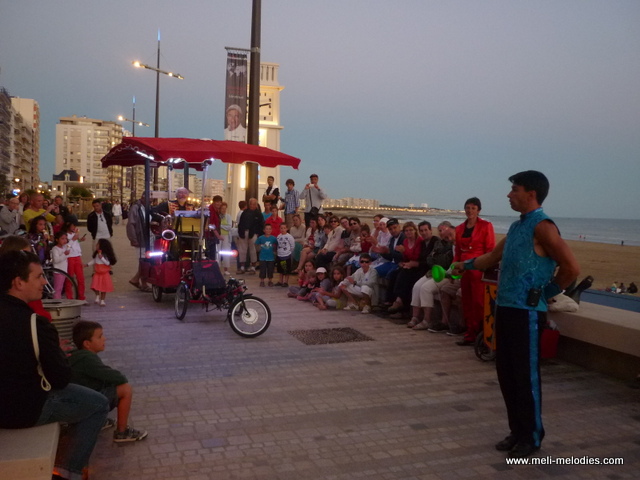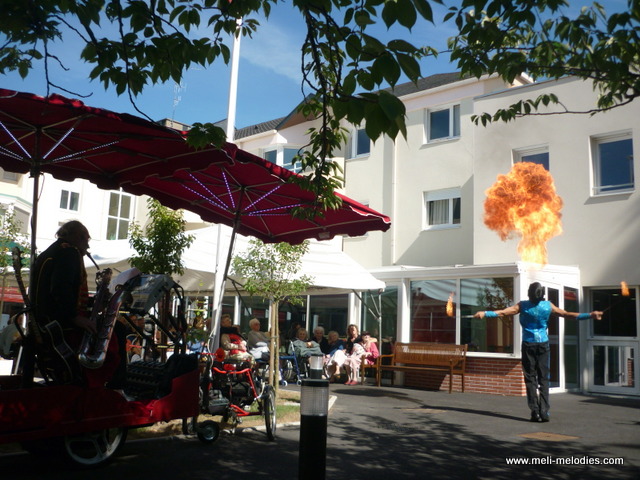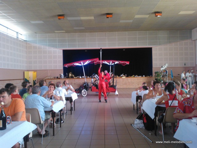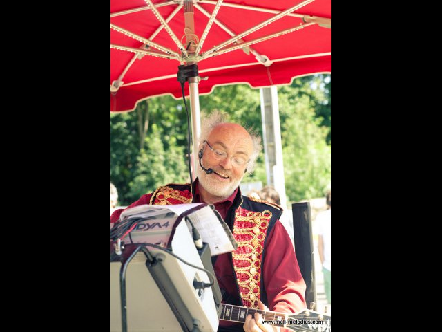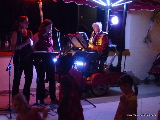 Vous m’y voyez en solo (homme-orchestre), avec chanteuse, avec les artistes de cirque les Rolimax.